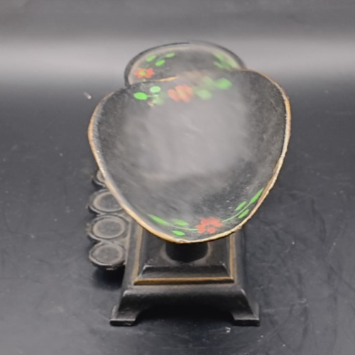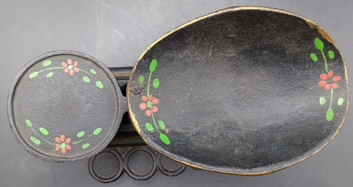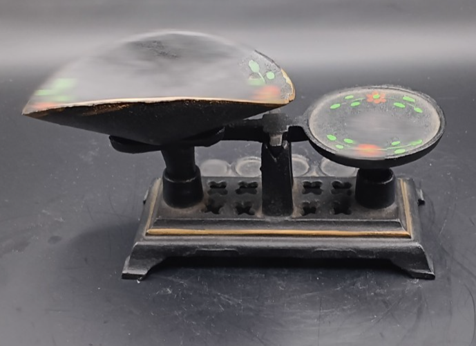 Vintage Miniature Cast Iron Hand decorated w/ Flowers Weight Scale.