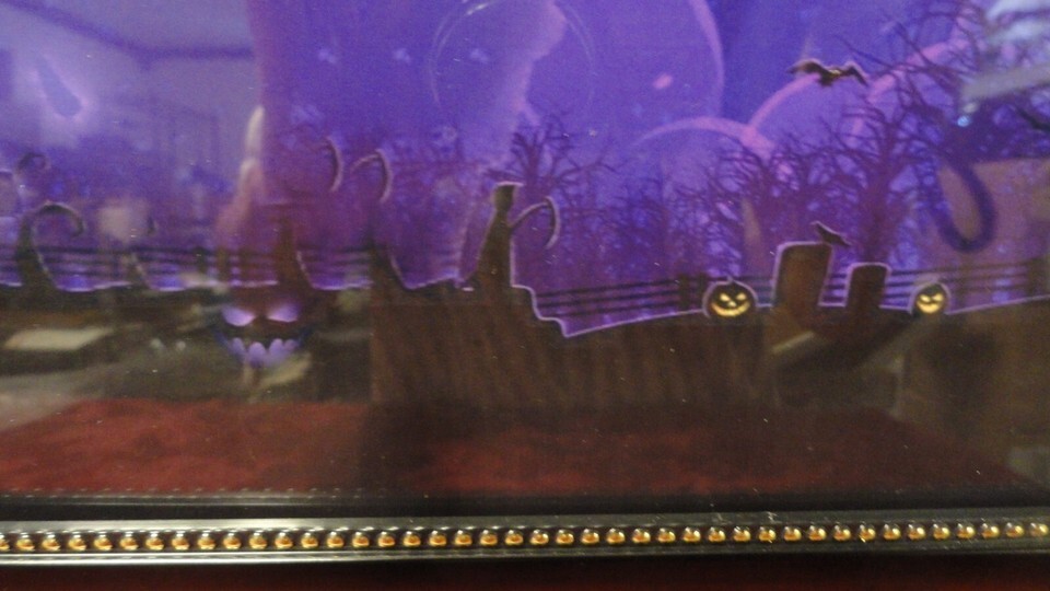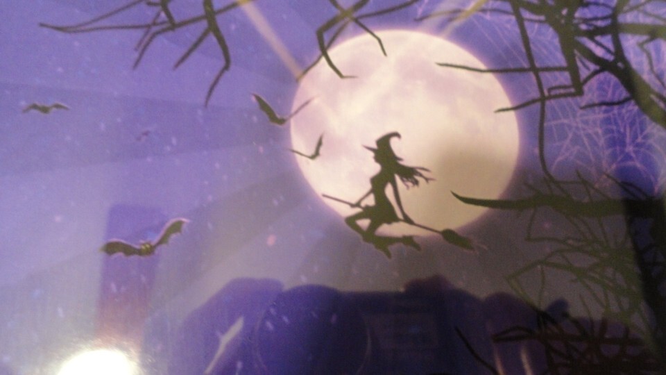 FRAMED HALLOWEEN WITCH RIDING BROOM WITH MOON BACKGROUND
