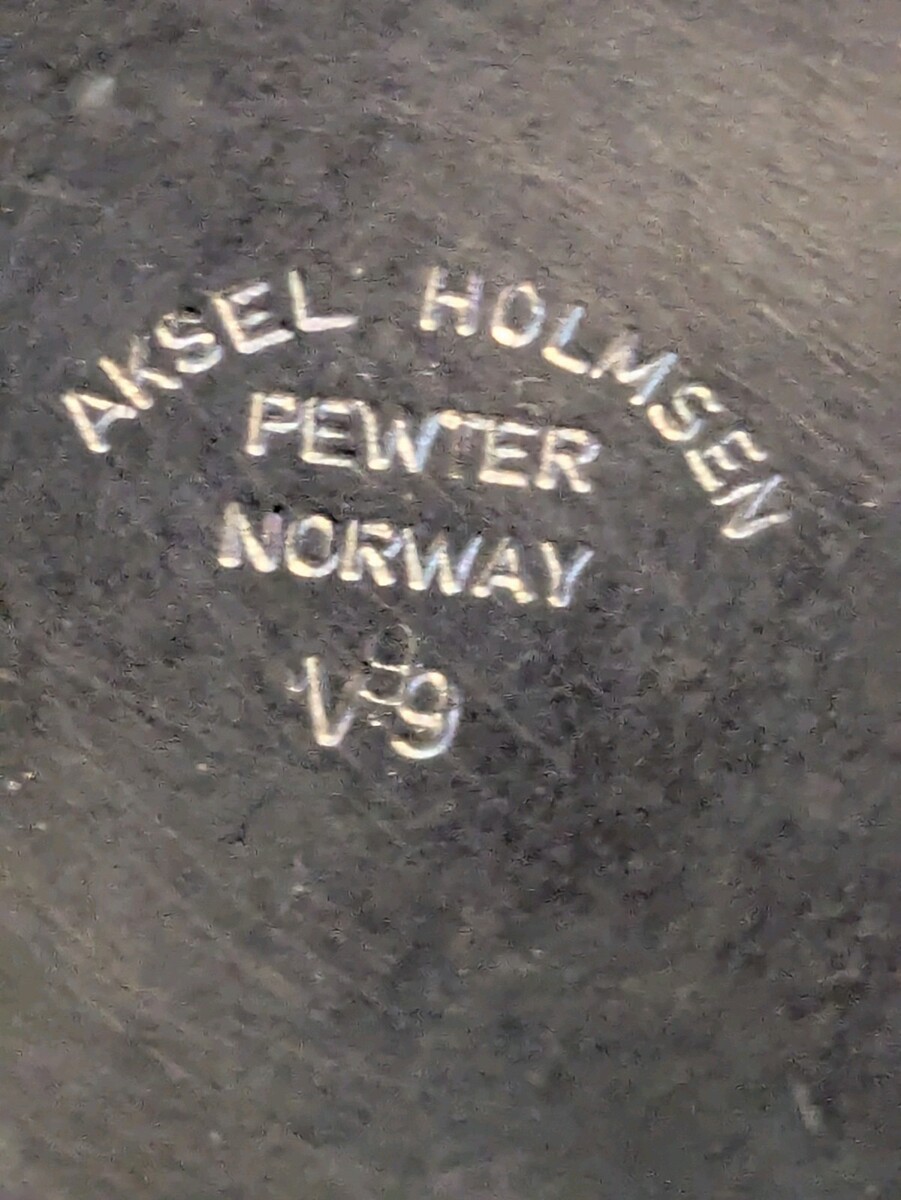 Vaso Rotondo Piccolo In Peltro Metallico Aksel Holmsen V9 MCM Norvegia 7 In