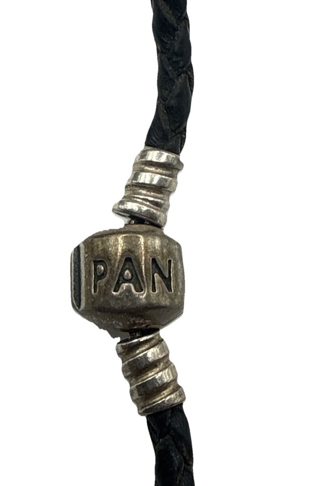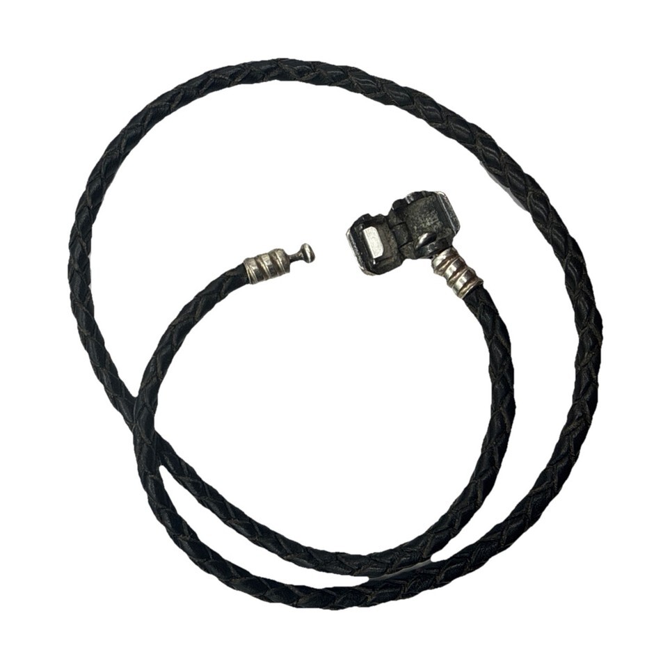 Nice Pandora leather cord with sterling silver clasp. This is a short necklace measuring 14 inches. The cable is a black braided cord.