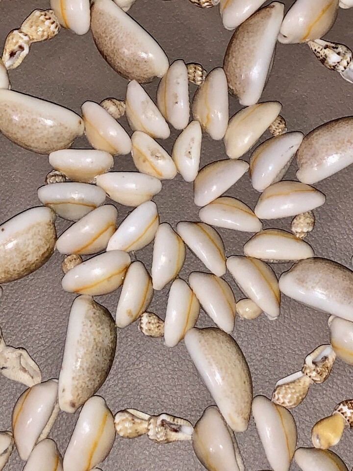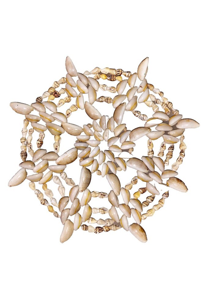 Genuine Seashell Trivet Hot Pad Vtg round 8" Boho Beach Ocean Cottagecore decor