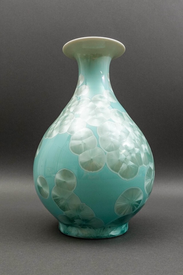 John Richard Powder Blue Mother Of Pearl Porcelain Vase 11 3/8"