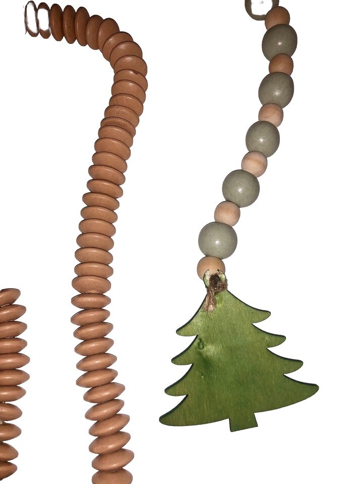 This set of 2 wood beaded garlands with tassels is perfect for adding a touch of bohemian style to your home decor, especially during the Christmas season. The garlands are 27" and 32" in size, making them versatile for various occasions. Made from wood, these multicolor garlands are artificial and easy to maintain. Add these festive and trendy pieces to your holiday and seasonal decor to bring a unique and charming touch to your space.