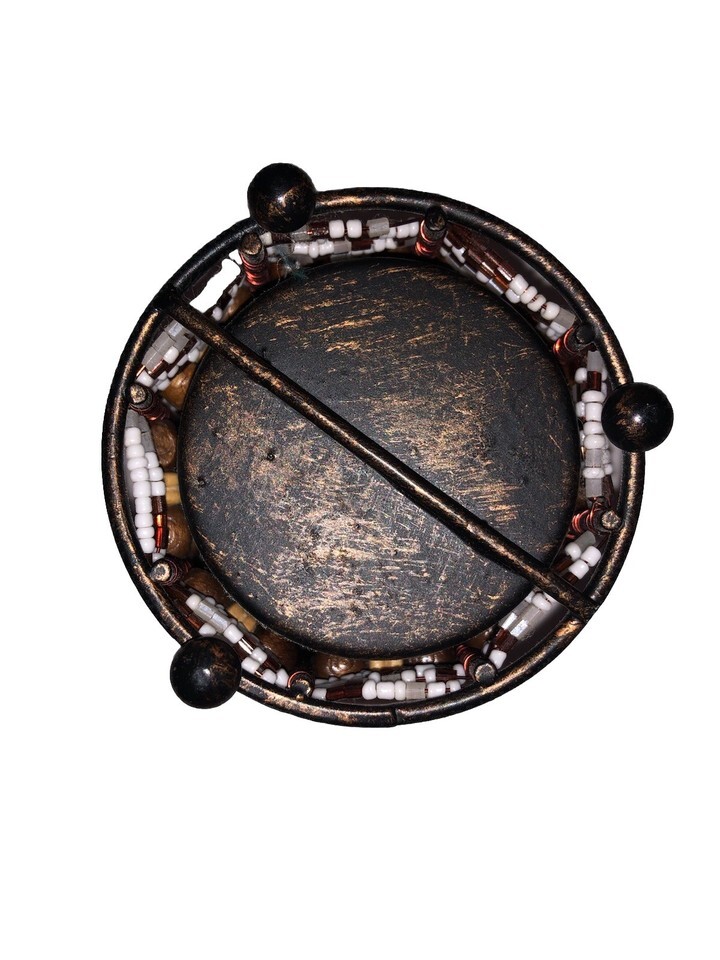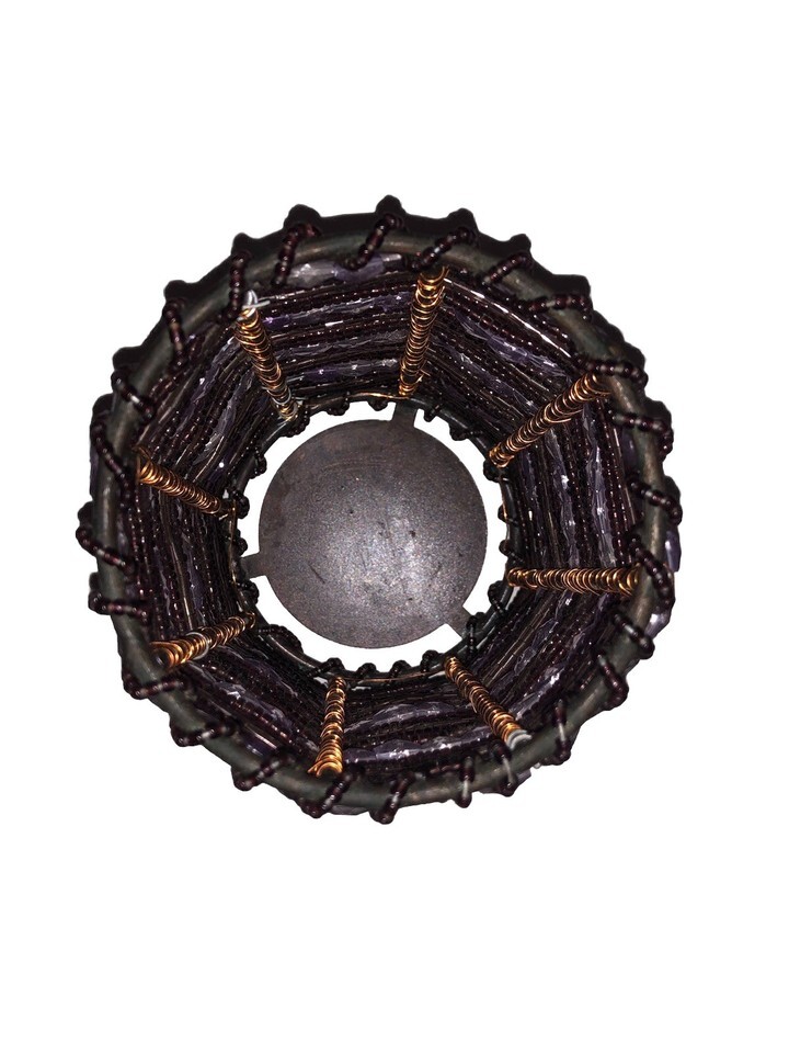 2 Vtg Seed Bead Votive Tealight Candle Holders Purple Amethyst Brown BoHo Relax