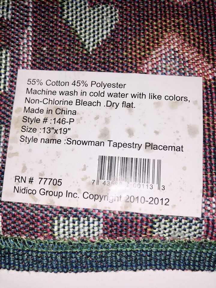 Holiday Christmas Tapestry Single Placemat 12.5”x18.5” Snowman Penguin Tree Star