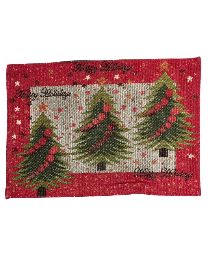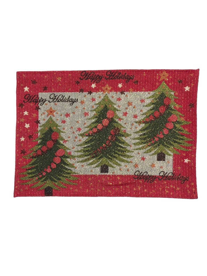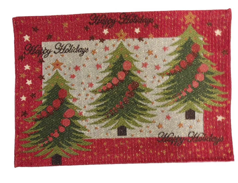 Set of 3 Vintage Tapestry Woven Christmas Holiday Table Winter Placemats Trees