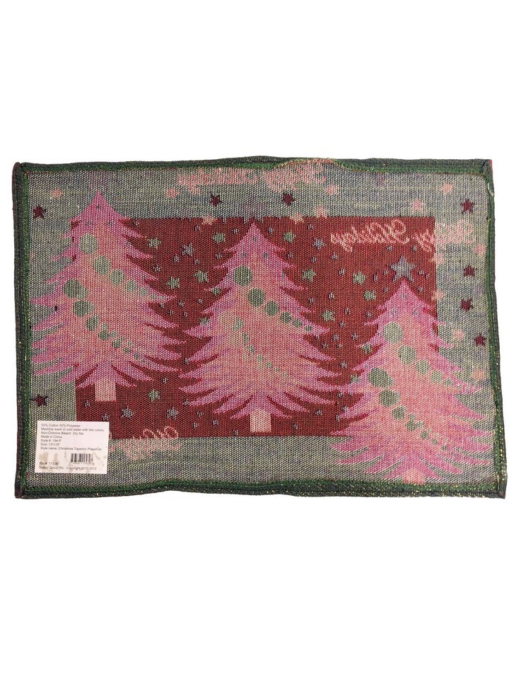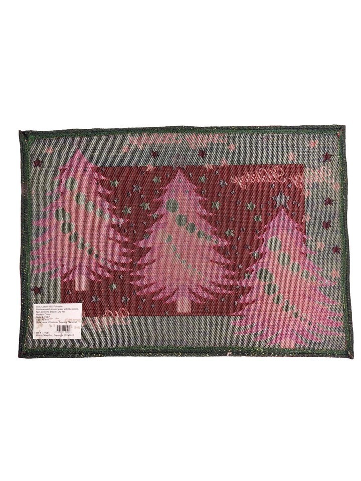 A set of 3 vintage tapestry woven Christmas holiday placemats featuring winter trees. Made of a cotton blend material, these multicolor placemats are perfect for adding seasonal flair to your table decor during the holiday season.