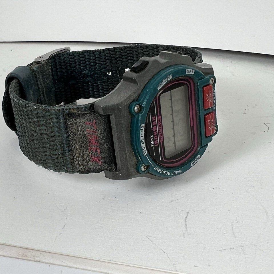 Vintage 1997 Womens TIMEX Ironman Triathlon 8 Lap Digital Teal Green/Gray Watch