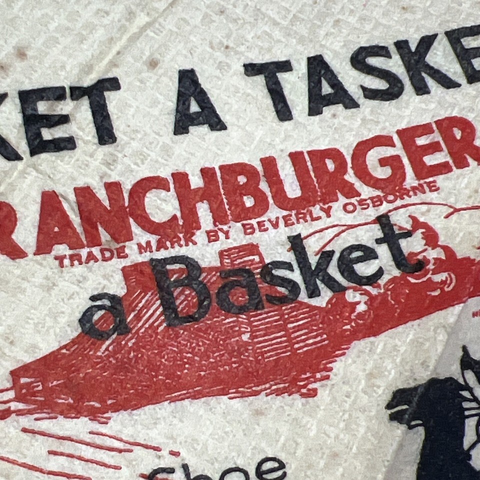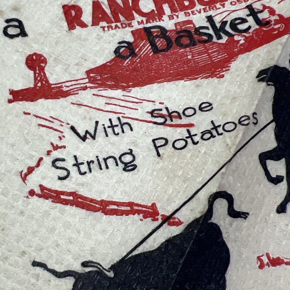 Vintage Chicken In The Rough Ranch burger Napkin Beverly Osborne 1940s