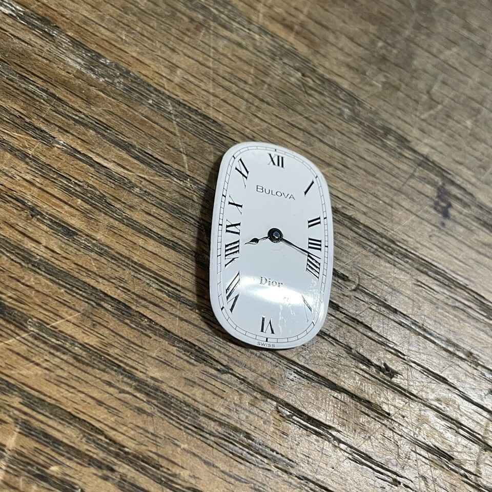 Vintage Bulova Dior Watch Dial White w/ black 30mm x 17.5mm.