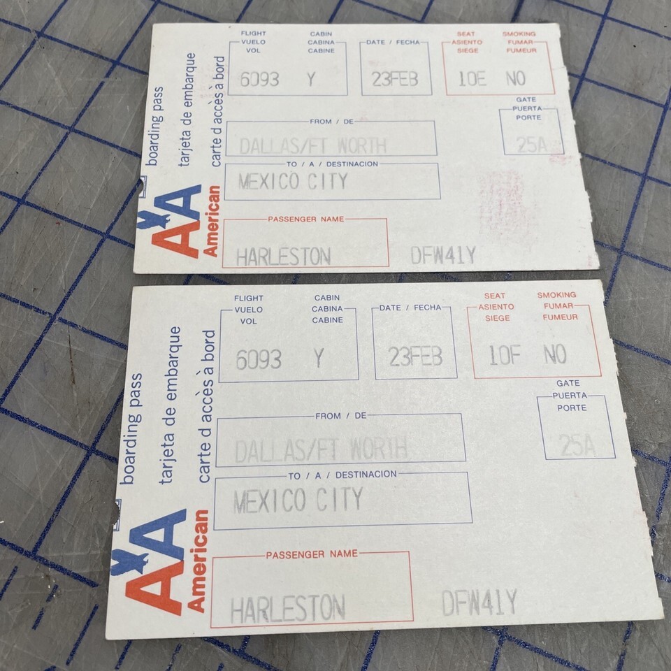 American Airlines Boarding Passes 1980s Dallas To Mexico Ephemera
