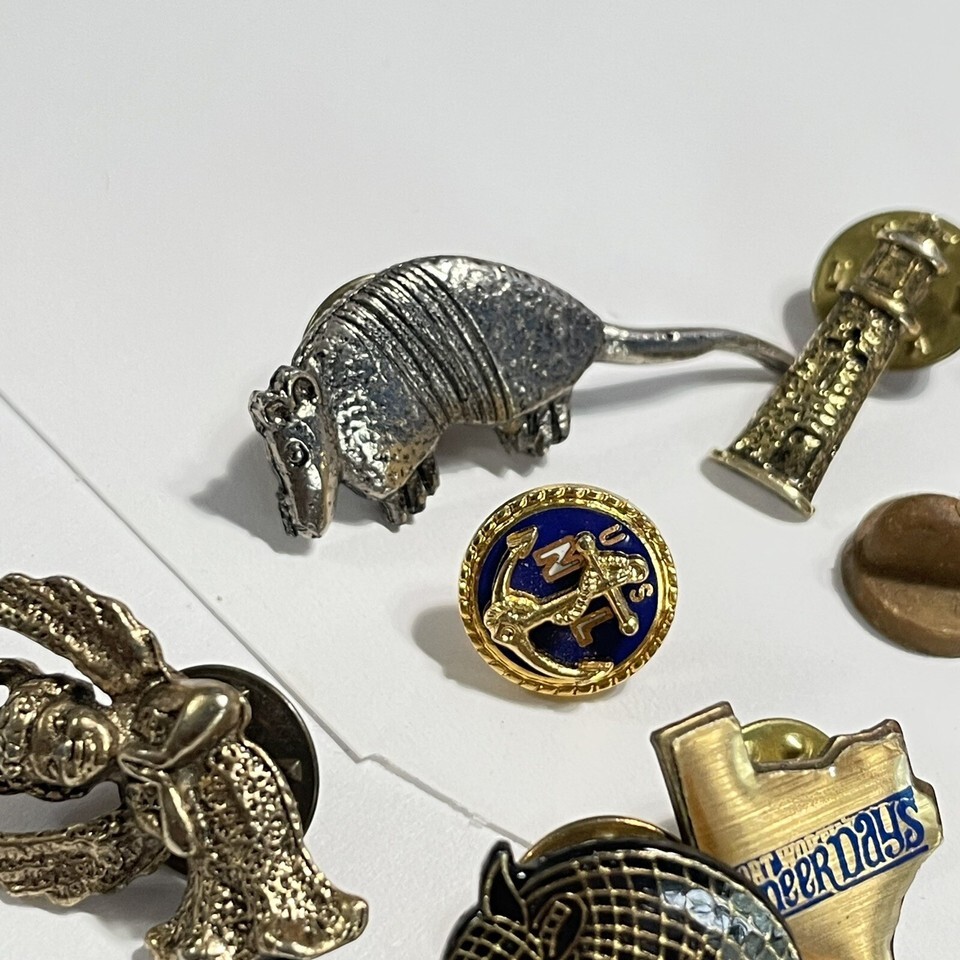 Pin Back Lot Forth Worth Pioneer days Cat Armadillo Duck Angel Cross