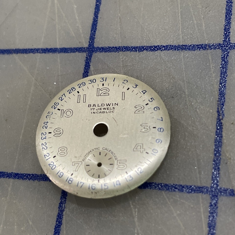 Vintage Baldwin watch dial Incabloc 17 Jewel 23mm Used.