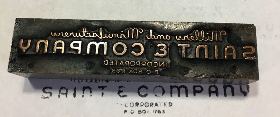 Letterpress Printing Block Saint & Company Miller And Manufacturers