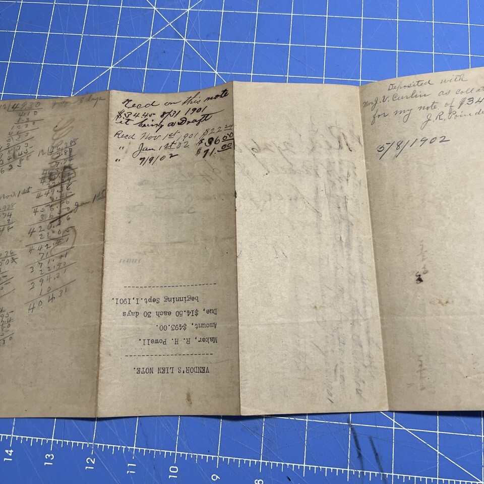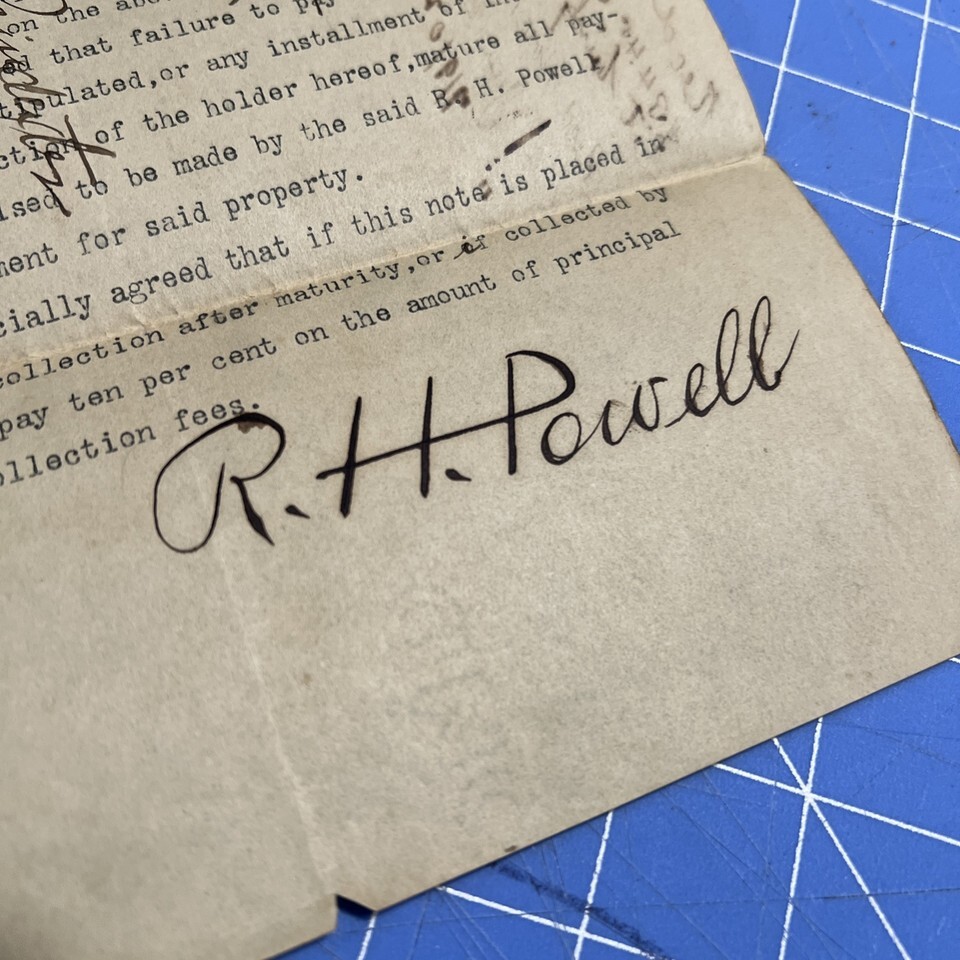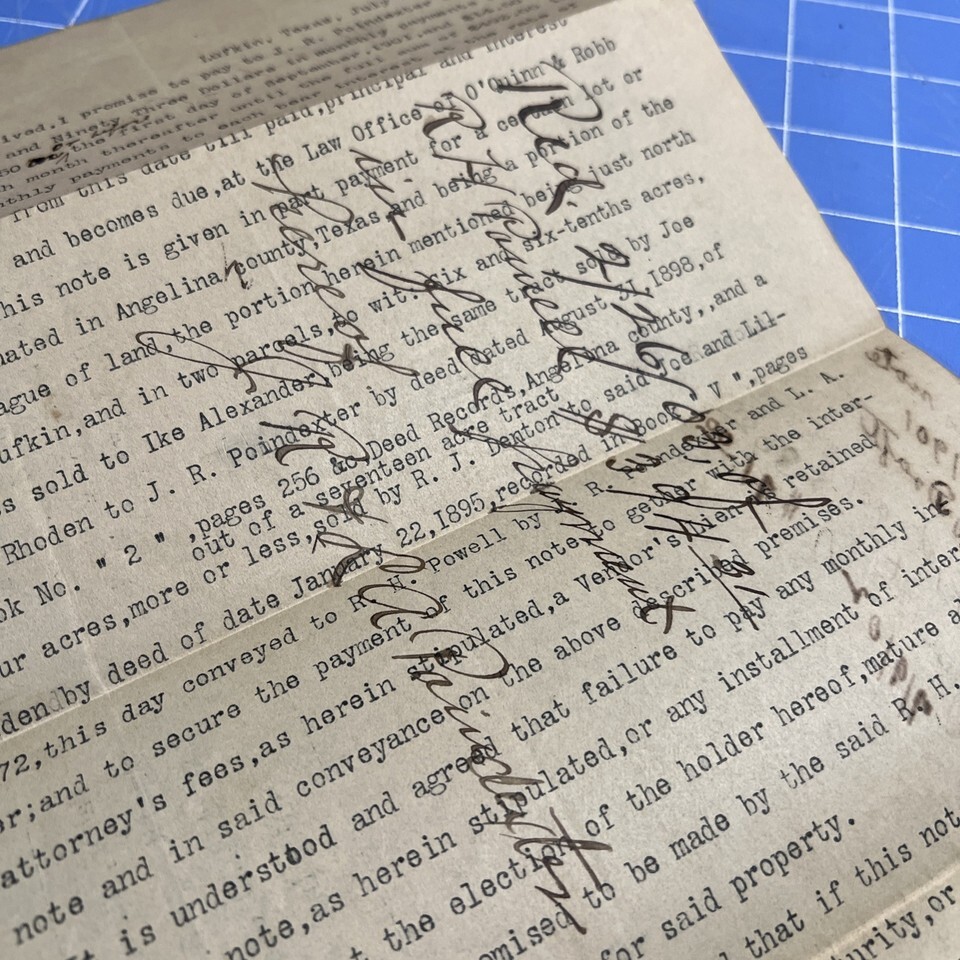 Antique Vendors Lien Note Lufkin Texas 1901 Signed R.H. Powell J.R. Poindexter