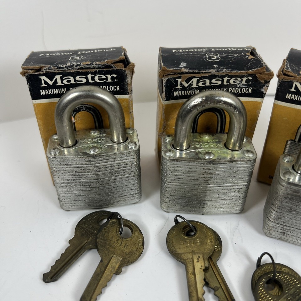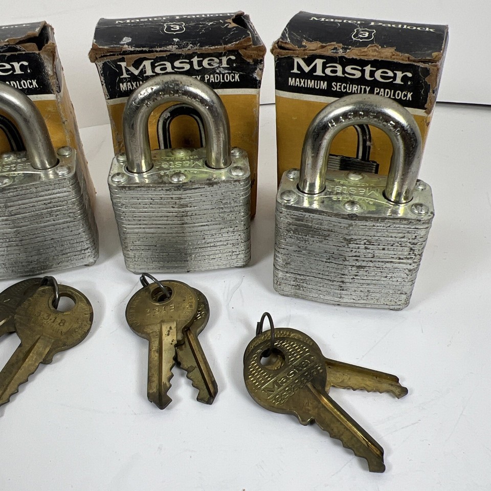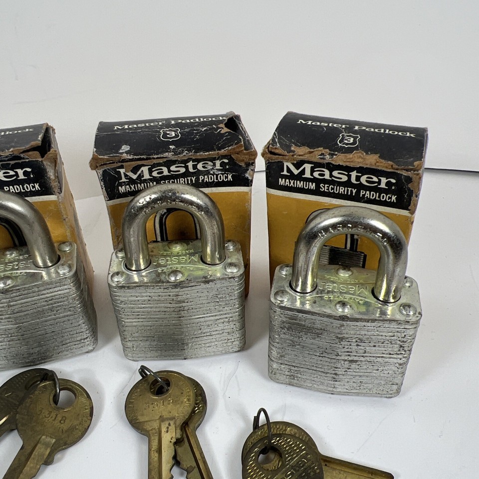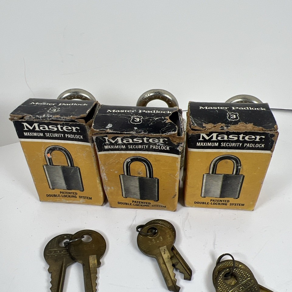 Vintage Master lock 3 Padlocks Secret Service Keyed Alike With Boxes