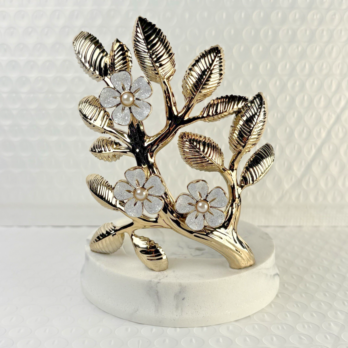 Bath & Body Works Gold Branch White Glitter Flowers Marble Foaming Soap Holder