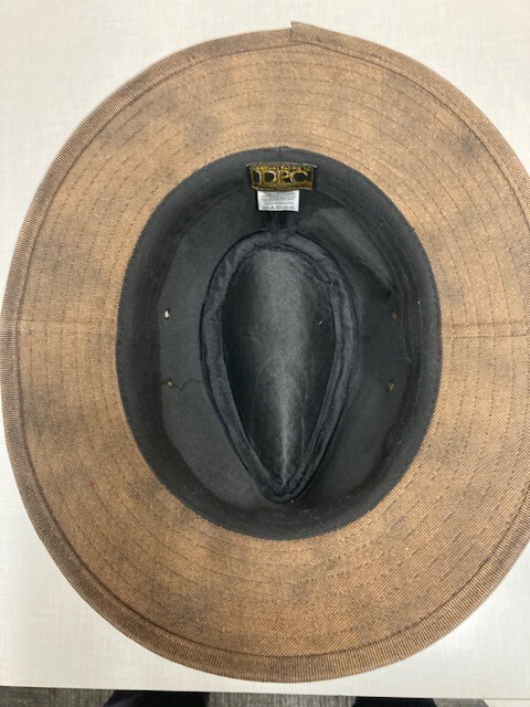 Dorfman Pacific Co Distressed Brown Cotton Leather Look Lightweight Fedora Sz M Some light signs of wear as shown. Please refer to images.