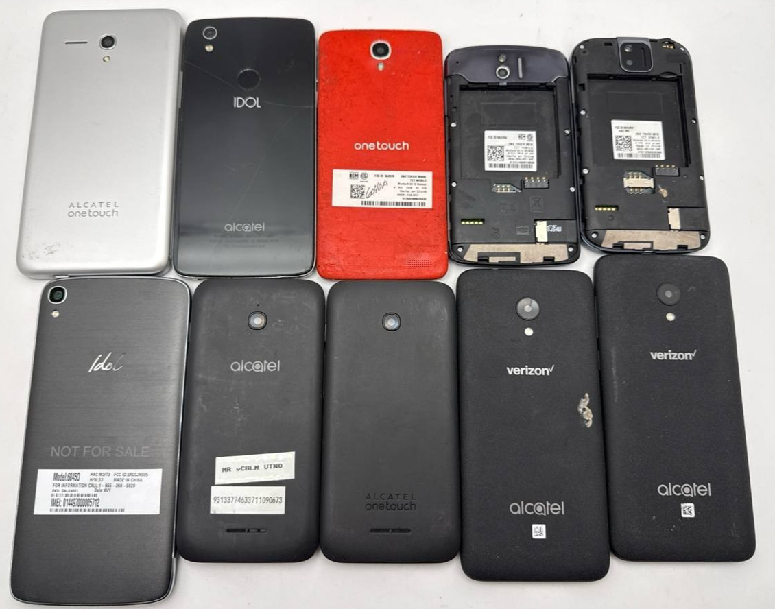 Lot of 10 Smartphones Alcatel Idol 5S Pixi 3 Flint 1X 991 Hero No Power READ