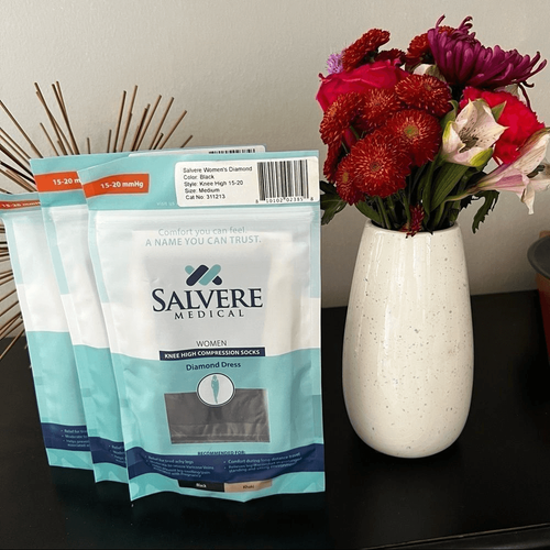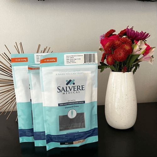 SALVERE WOMEN'S DIAMOND, 3 PAIR KNEE HIGH, COMPRESSION-SOCKS 15-20 MMHG MEDIUM,