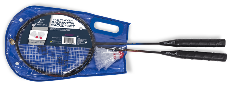 Step onto the badminton court with confidence using the EastPoint Sports 2 Player Badminton Racket Set, a pinnacle of performance and comfort. This set includes two rackets, each equipped with tempered steel shafts and soft-grip handles, ensuring comfort and control throughout every match. The 26? long EastPoint Rackets also feature grommets that extend string life, ensuring your equipment stays in peak condition for years to come. Also includes 2 durable all-weather shuttlecocks for non-stop action. For a complete backyard badminton collection, pair these rackets with EastPoint's Easy Set Up Badminton set. Dominate the court and elevate your game with the EastPoint Sports 2 Player Badminton Racket Set ? where precision, durability, and comfort unite for an exceptional playing experience. Great for all ages and skill sets! New condition.