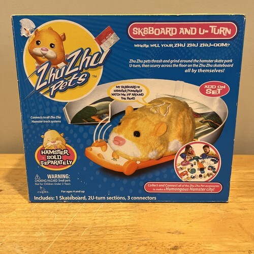 Enhance your ZhuZhu Pets collection with this Sk8Board and U-Turn add-on set. The set includes a skateboard, two U-Turns, and three connectors to create a fun and challenging track for your ZhuZhu Pets. This set is perfect for children ages 4 and up who love ZhuZhu Pets and want to expand their playtime.