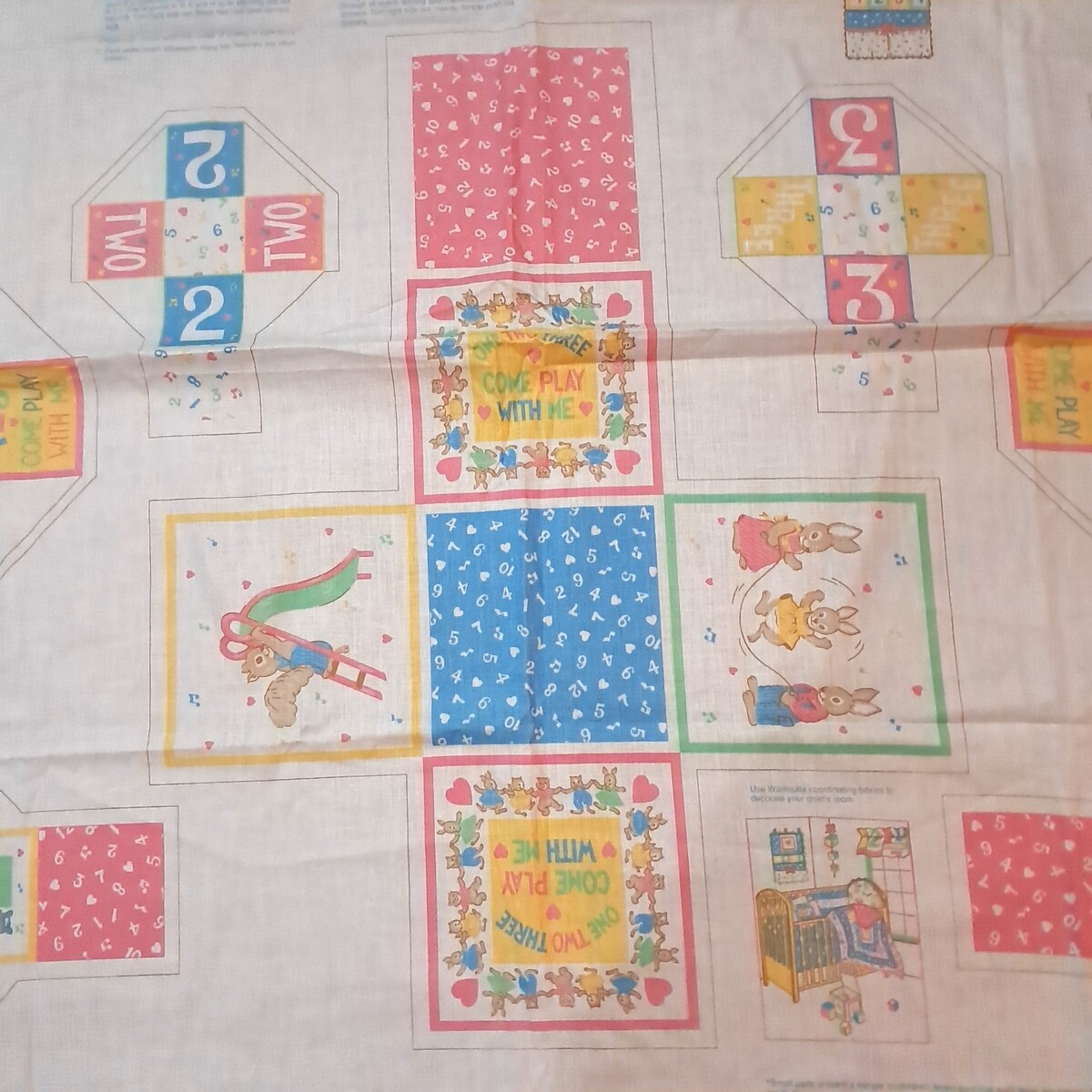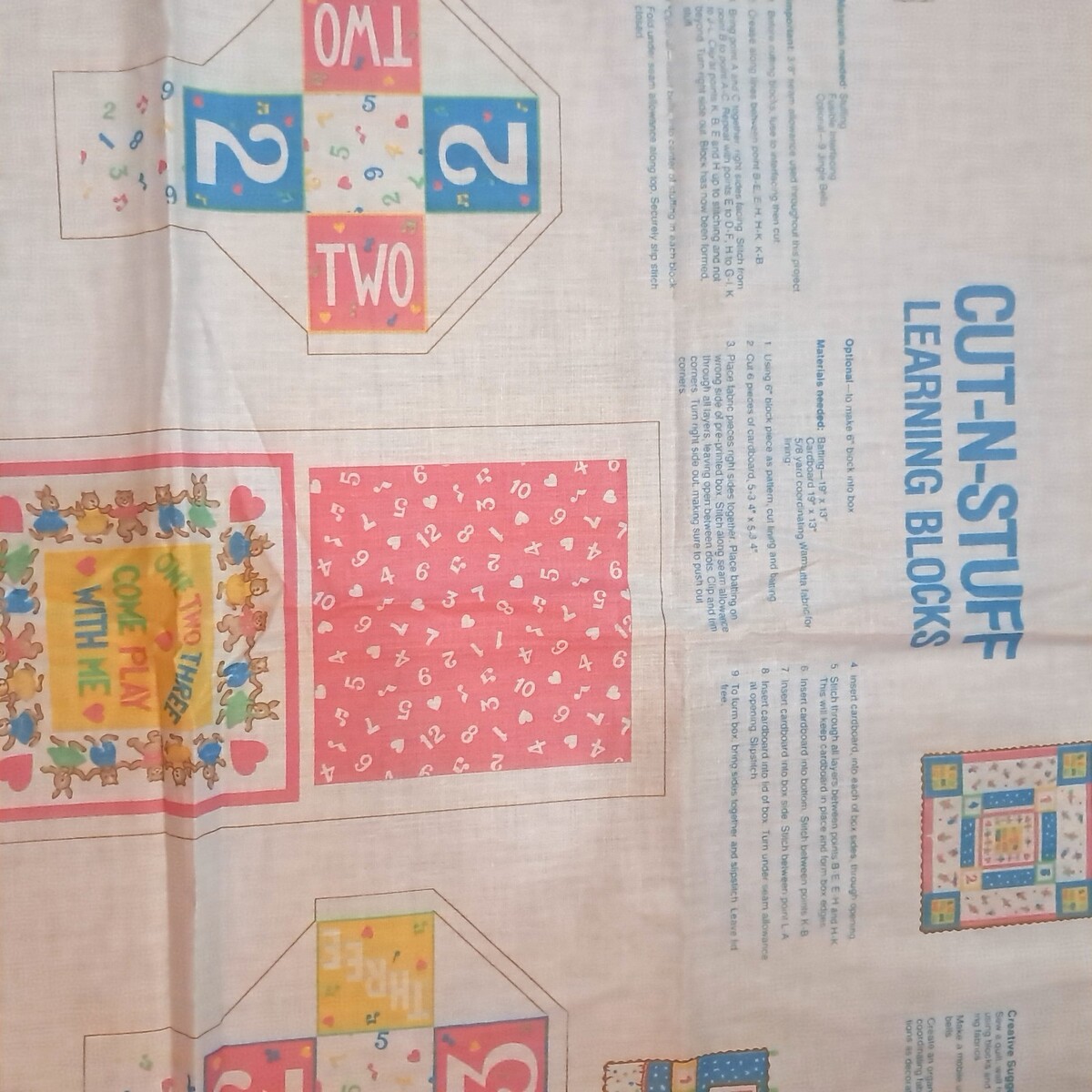 Vintage Wamsutta Craft Fabric Panel Cut-N-Stuff Learning Blocks baby pastel