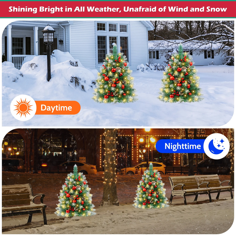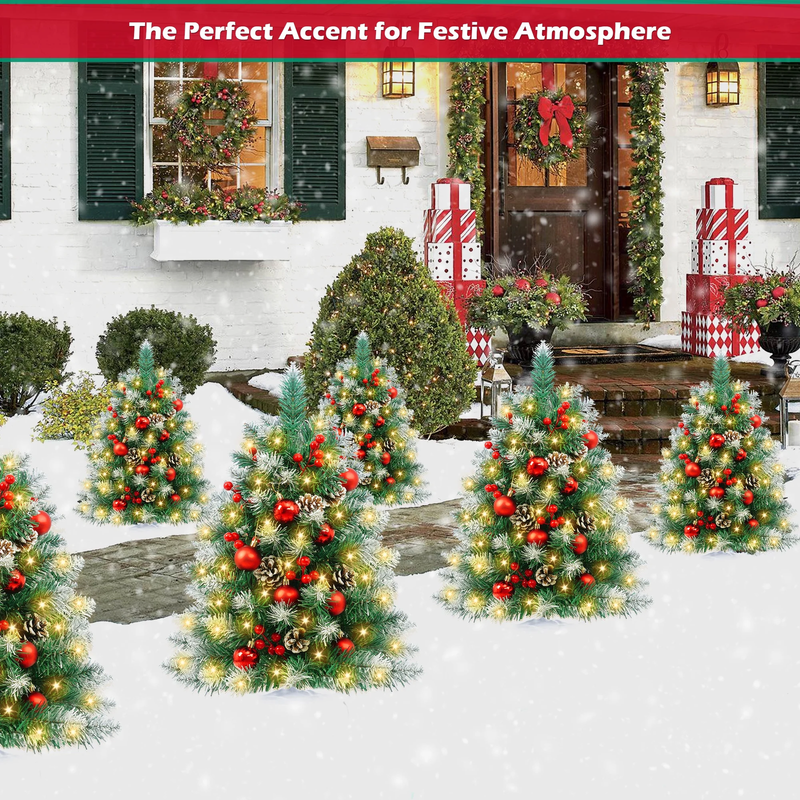 2PCS Small Outdoor Christmas Trees with LED Lights,30" Artificial Xmas Decora for Porch,Yard,Pathway,Garden,Pvc