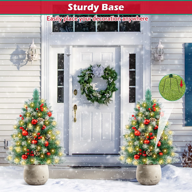 2PCS Small Outdoor Christmas Trees with LED Lights,30" Artificial Xmas Decora fo