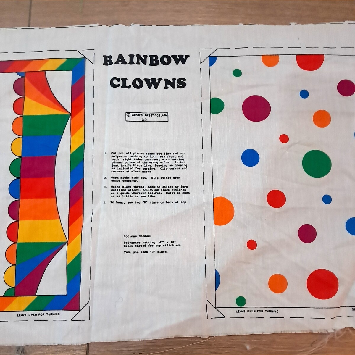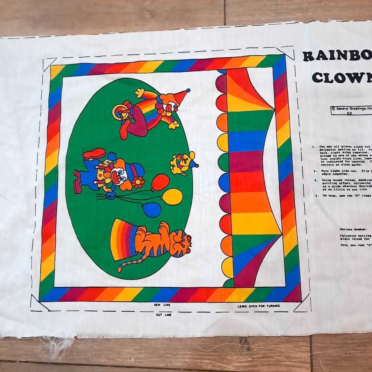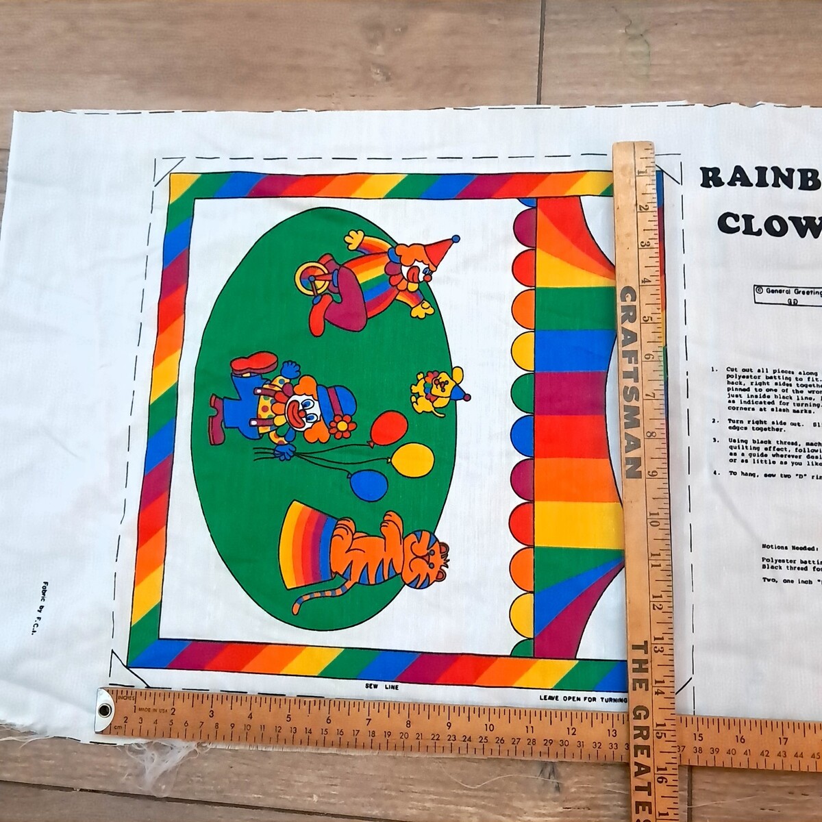 Vintage General Greetings Rainbow Clown Panel Cut Sew Fabric pillow craft bright