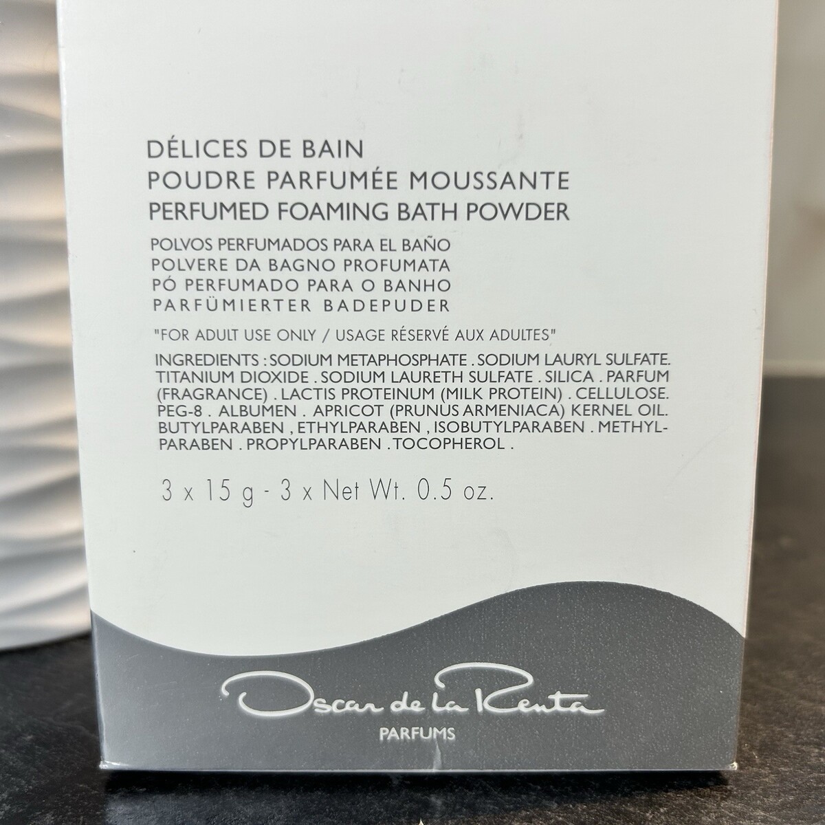 NEW Oscar De La Renta Perfumed Foaming Bath Powder 3 Packs .5 oz Each Gift Set.