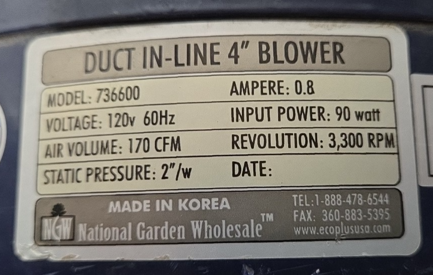 Sunlight Supply Inc. Eco Plus Duct In-line 4" Blower - Model 736600