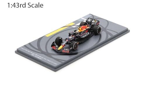 Product description: Red Bull Racing Honda RB18 Max Verstappen #1 Winner Abu Dhabi GP 2022 Produced by Spark, this is a detailed replica of the 2022 RB18 racecar driven by Max Verstappen winning the Abu Dhabi Grand Prix. Max had a record year with 15 victories in 2022 and his 2nd World Championship! Features authentic sponsor and team decals, detailed cockpit, driver figure. Made from Resin. Both scales come encased in acrylic. 1:43rd scale comes with Bigger base with donut tire marks. 1:18th Scale also features donut tire marks. Sizes: 1:43rd: 4", 1:18th 10".