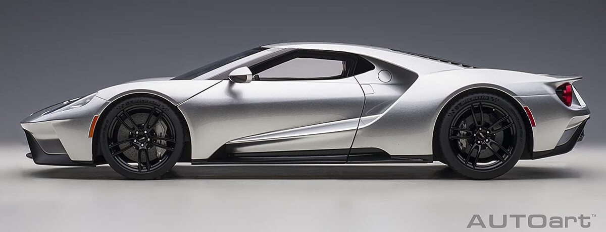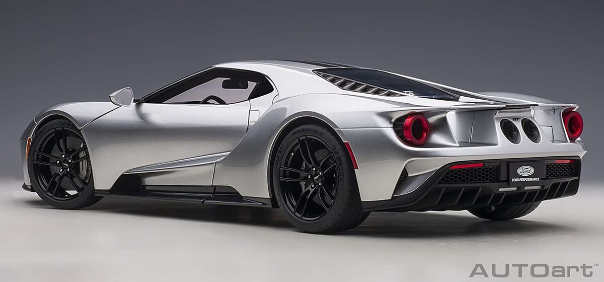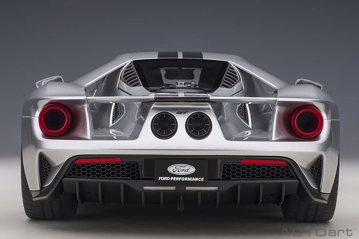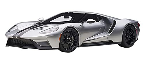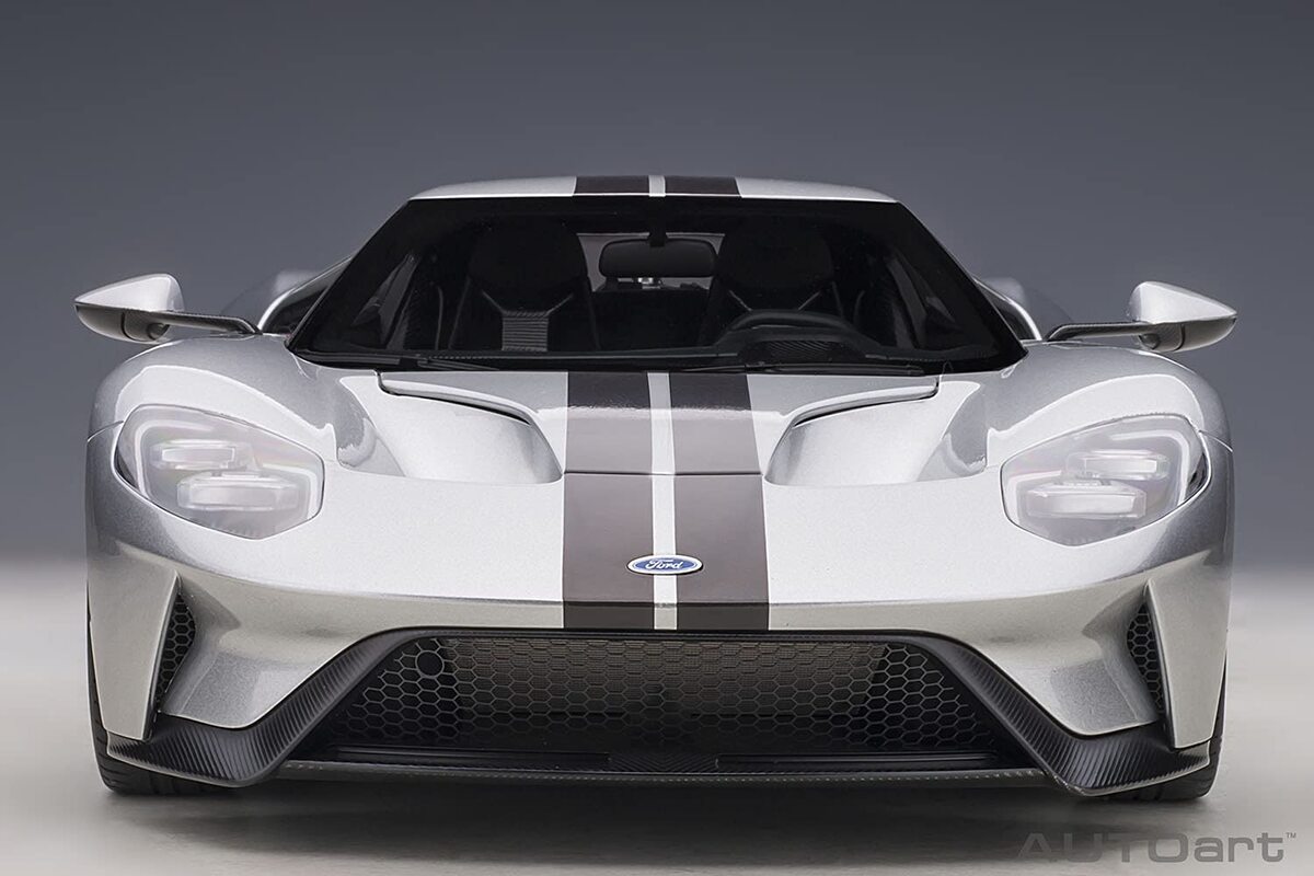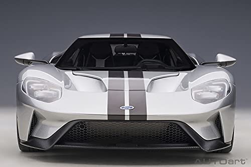 2017 Ford GT Ingot Silver Metallic with Black Stripes 1/12 Model Car by Autoart