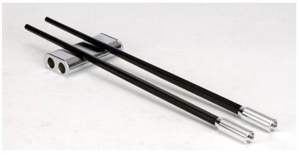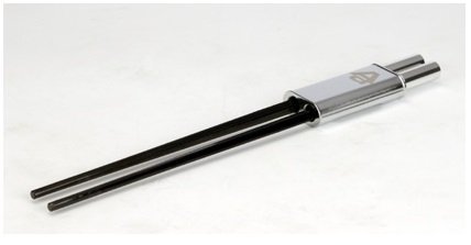 Product description: Appearing like a miniature exhaust system, the two exhaust pipes function as a pair of chopsticks when taken out from the muffler. The muffler itself is placed on the table as a chopstick rest. The chopsticks are made of special plastic that is hygienically safe and the exhaust tips and muffler body are made of aluminium.