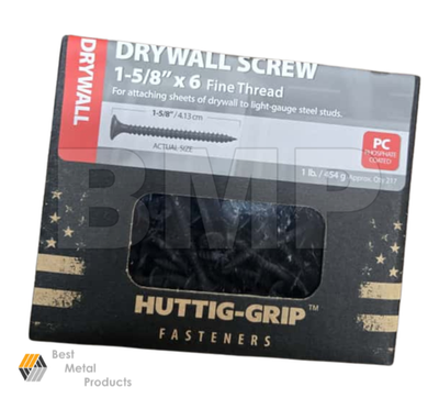 FREE SHIPPING - Huttig-Grip Drywall Screws 1-5/8" x #6 - Black Phosphate, Coarse Thread, Phillips Bugle Head