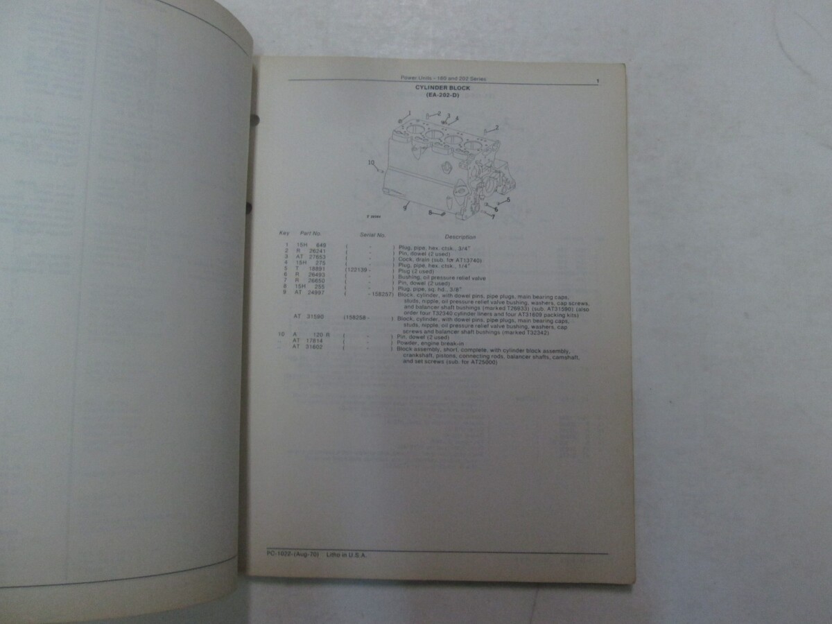 John Deere PC-1022 180 e 202 Serie Power Unit Parts Catalog Manual Writing