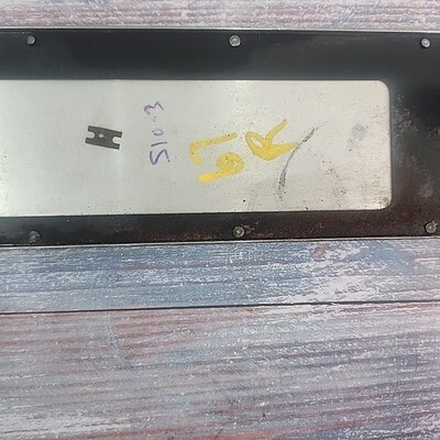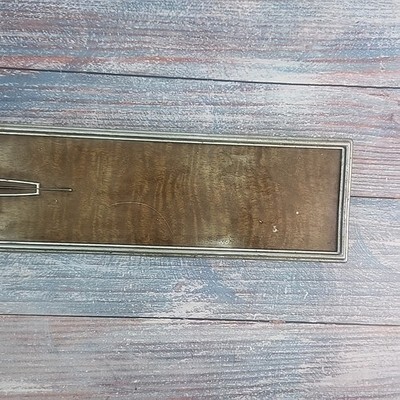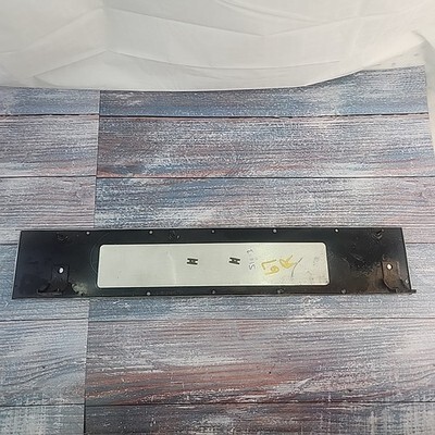 Exact item is shown. Vintage used item with noticeable wear from use. No part number found on this item. Wood grain painted metal with chrome surround, which has some pitting. Steel frame has some rust as well. Item dimensions 23 x 4 inches, weight 1.5 lbs. Mounting brackets and pins are in good condition. Made in USA. Please review our business policies in our store for information regarding returns, shipping and warranties.