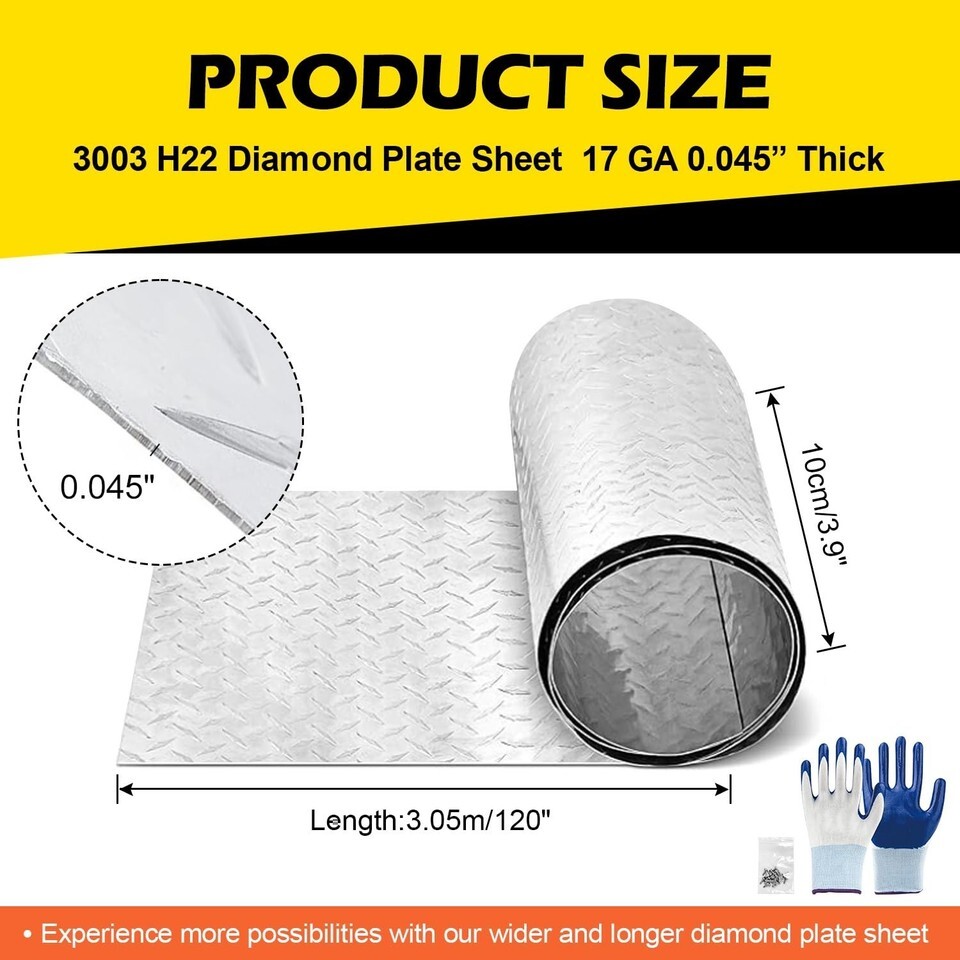 Customizable 4'' x 120'' Aluminum Diamond Plate - Ideal for DIY & Commercial Use