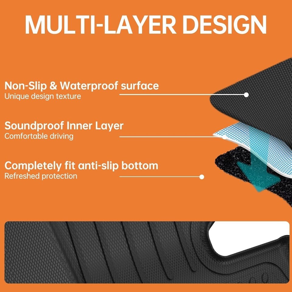 All-Weather Guard: Made with TPE tri-extruded material, these mats are 100% safe, odor-free, and eco-friendly. Protect your vehicle from rain, fog, snow, and more.