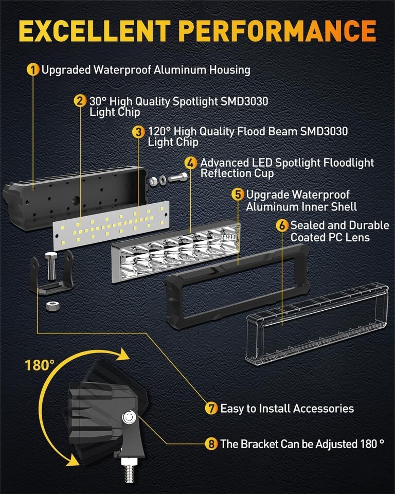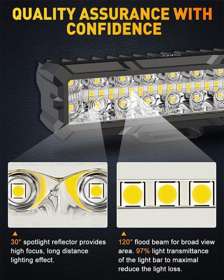 With a robust construction designed to withstand the elements and an easy installation process, our LED light bar not only enhances outdoor adventures but also stands out in style. Expected longevity is backed by our commitment to customer support, ensuring you get the most out of your investment.