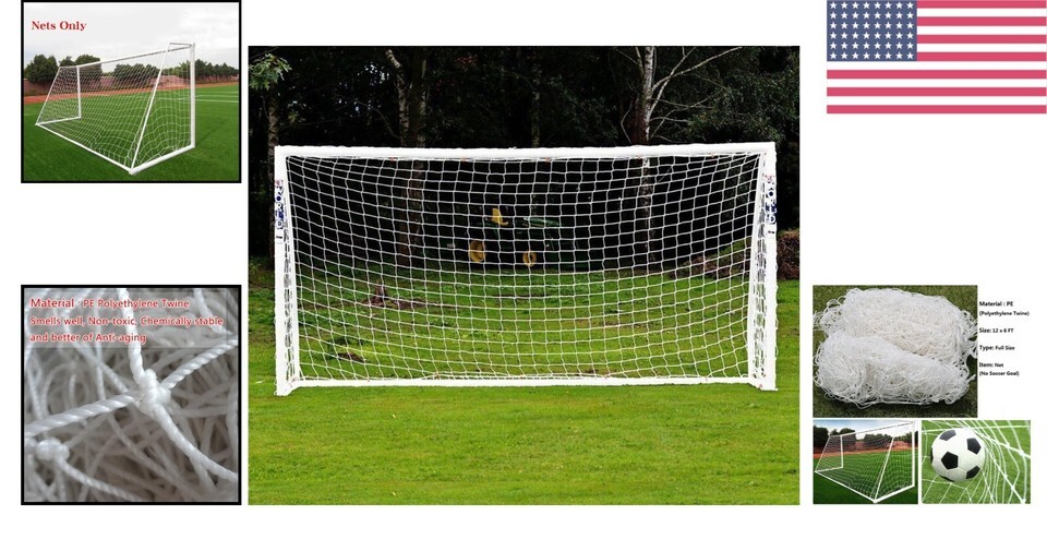 Full Size Variety: Available in multiple sizes including: 12 x 6FT, 24 x 8FT, 10 x 6.5FT, and 6 x 4FT, catering to all playing needs. (Note: Net Only - Soccer goal and poles not included)