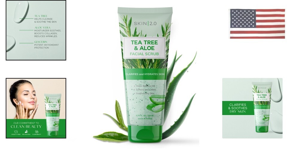 Elevate your skincare routine with our Tea Tree Aloe Exfoliating Scrub, expertly formulated to leave your skin feeling refreshed and rejuvenated. Infused with natural ingredients and based on the wisdom of Korean skincare, this scrub is perfect for anyone seeking a gentle yet thorough cleanse. Experience smoother, healthier skin while fighting the signs of aging, all in a convenient 6.76 fl oz bottle.