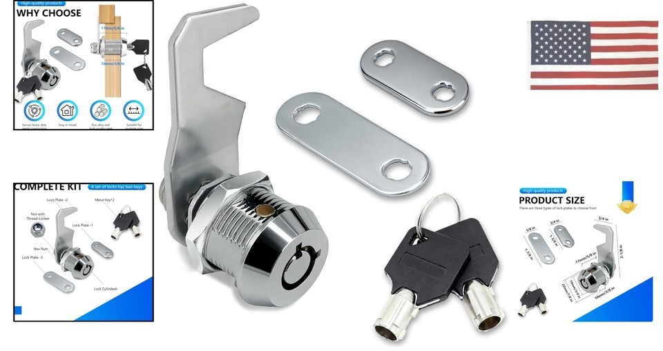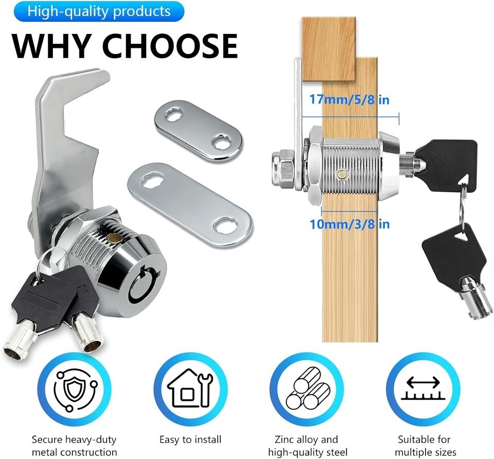 Includes: 1 Pack of 5/8" Tool Box Lock, 2 Keys (keyed alike), and 3 Bolts for Various Applications.