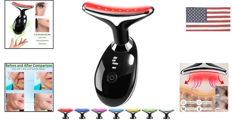 7 Color Options: This 7-in-1 face massager boasts seven different LED light modes, each tailored to enhance specific skincare functions.