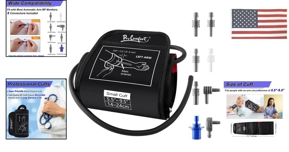 Wide Compatibility: Equipped with 8 connectors (0.15", 0.18", 0.19", 0.21", 0.23", 0.27", 0.45"), ensuring compatibility with most automatic arm blood pressure monitors.