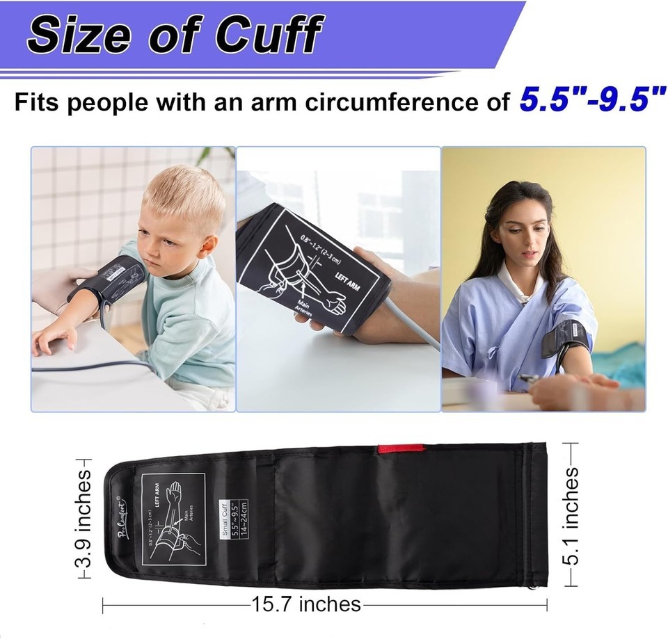Accurate Cuff for Slim Arms: Designed for arm circumferences ranging from 5.5" to 9.5", making it perfect for kids, teenagers, women, and slim adults.