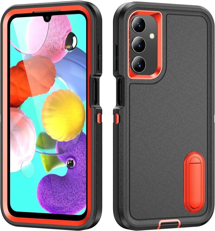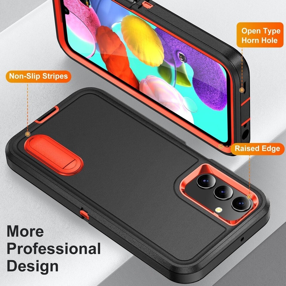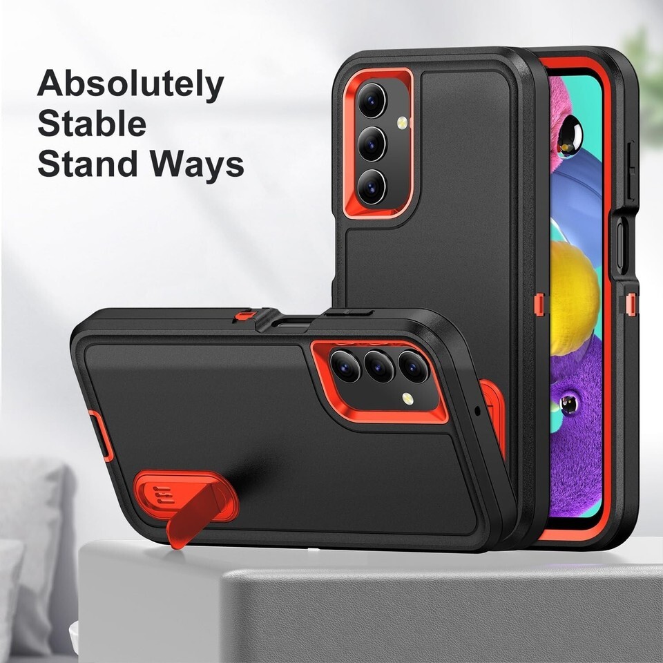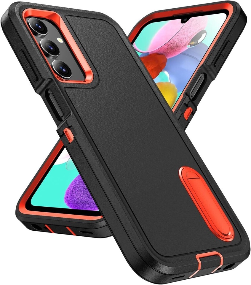Heavy-Duty Protective Case for Galaxy A15 with Built-In Kickstand - Black/Orange