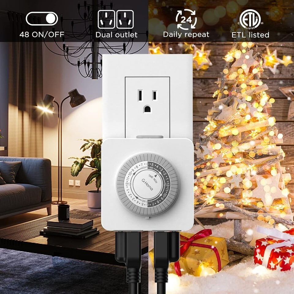 Multifunctional Design: Dual outlets allow for simultaneous functioning of two appliances, perfect for lights, lamps, Christmas decorations, and other electrical devices.