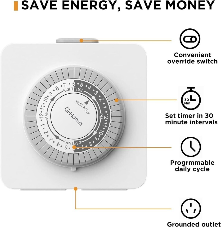 Easy to Use: Simply turn the outlet timer dial to the current time, adjust the pins for your desired on/off settings, and switch to timer mode for seamless operation.